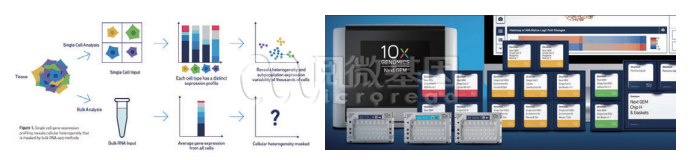 传统的高通量测序技术被广泛应用于研究不同组织/品种/处理/时间点等样本,但多是反映特定组织/细胞集合的基因表达平均水平或者代表性信息,单个细胞特异性的信息往往被掩盖,导致错失很多重要信息。10x Genomics Chromium系统利用微流控技术分选单个细胞后将细胞分配到油包水微反应体系中,并顺利获得每个微反应体系中含有的特定DNA标记序列(10x barcode和UMI )区分不同单细胞和转录本,可实现单细胞分辨率上的各类测序。其适用于多种细胞类型,包括生殖细胞、胚胎细胞、血细胞、神经细胞、肿瘤细胞、免疫细胞、干细胞等。