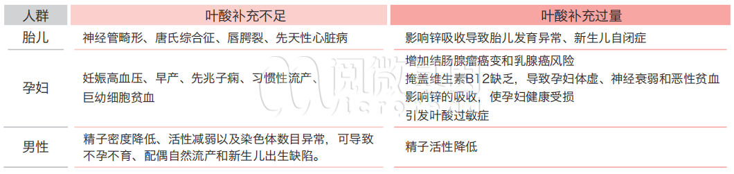 叶酸对人体生长发育发挥着重要作用,人体自身不能合成,必须从外界摄入;叶酸补充不足或利用能力差均会造成叶酸缺乏,导致高同型半胱氨酸血症。孕妇缺乏叶酸会导致胎儿出生缺陷,孕妇自身也会出现很多不良症状。但叶酸补充过量也会引发各种副作用,过与不及都有可能带来问题。